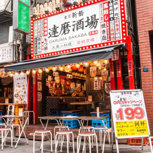 新橋駅烏森口から徒歩2分!【達磨酒場 新橋店】!20名ほどでもフロア貸切可能◎会社の宴会や仲間内での飲み会に最適!飲み放題付きコースを多数ご用意しております!